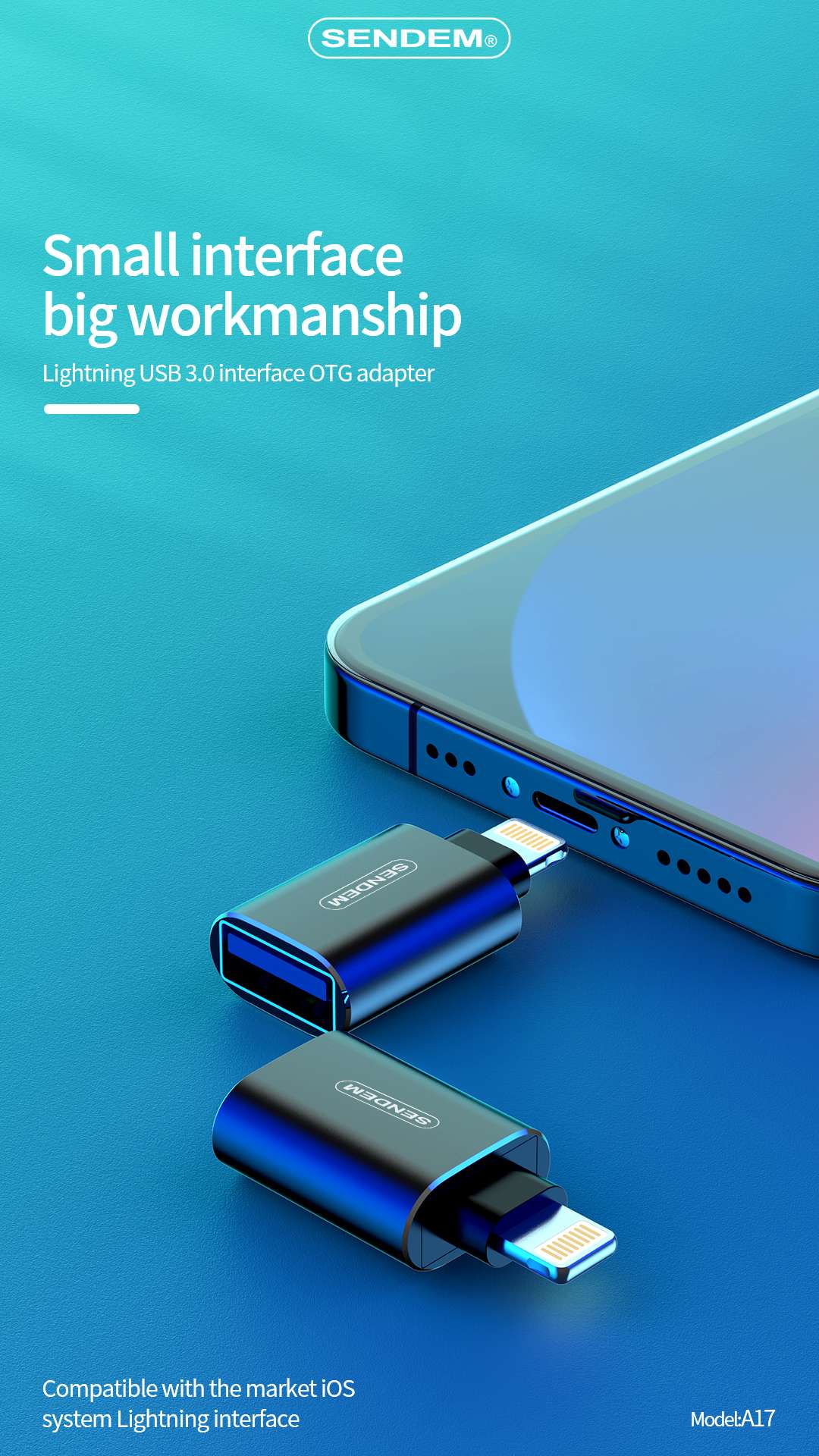 1.Small interface big workmanship.Lightning USB 3.0 interface OTG adapter,Compatible with the market ios system Lightning interface.