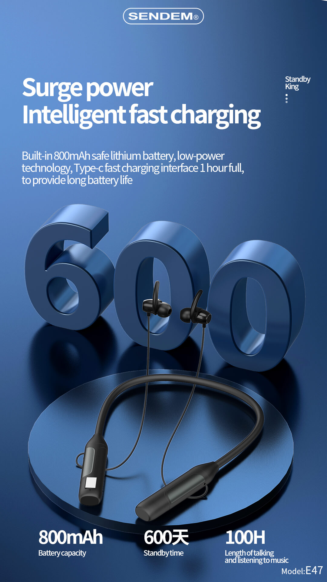 3.Surge power King Standby ,Intelligent fast charging.Built-in 800mAh safe lithium battery, low-power technology, Type-c fast charging interface 1 hour full, to provide long battery life.