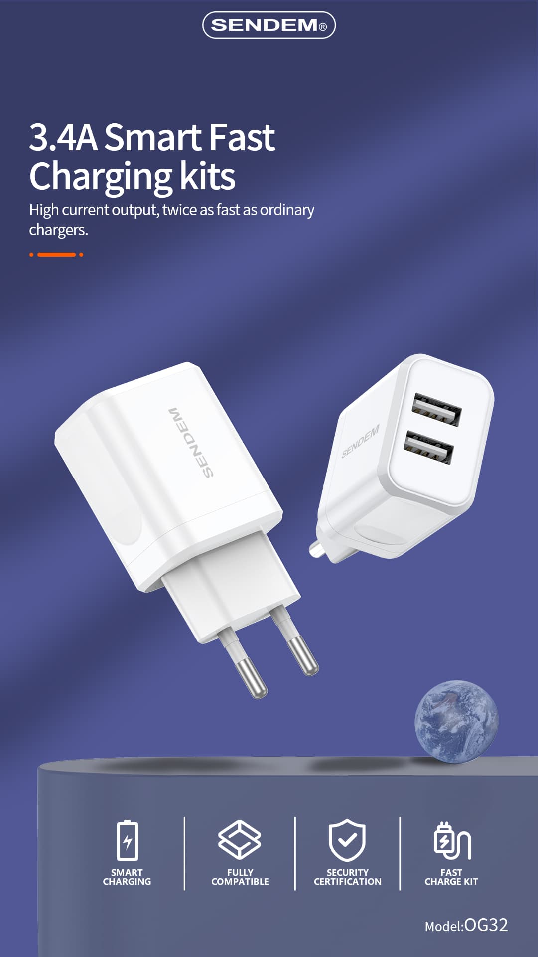 OG32-Ruishan series EU plug 3.4A Two USB wall charger