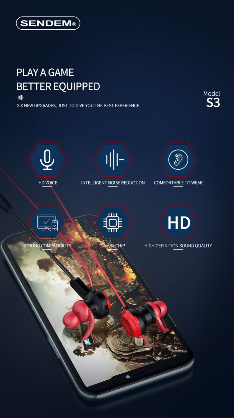 S3-HIFI stereo sound game earphone with microphone
