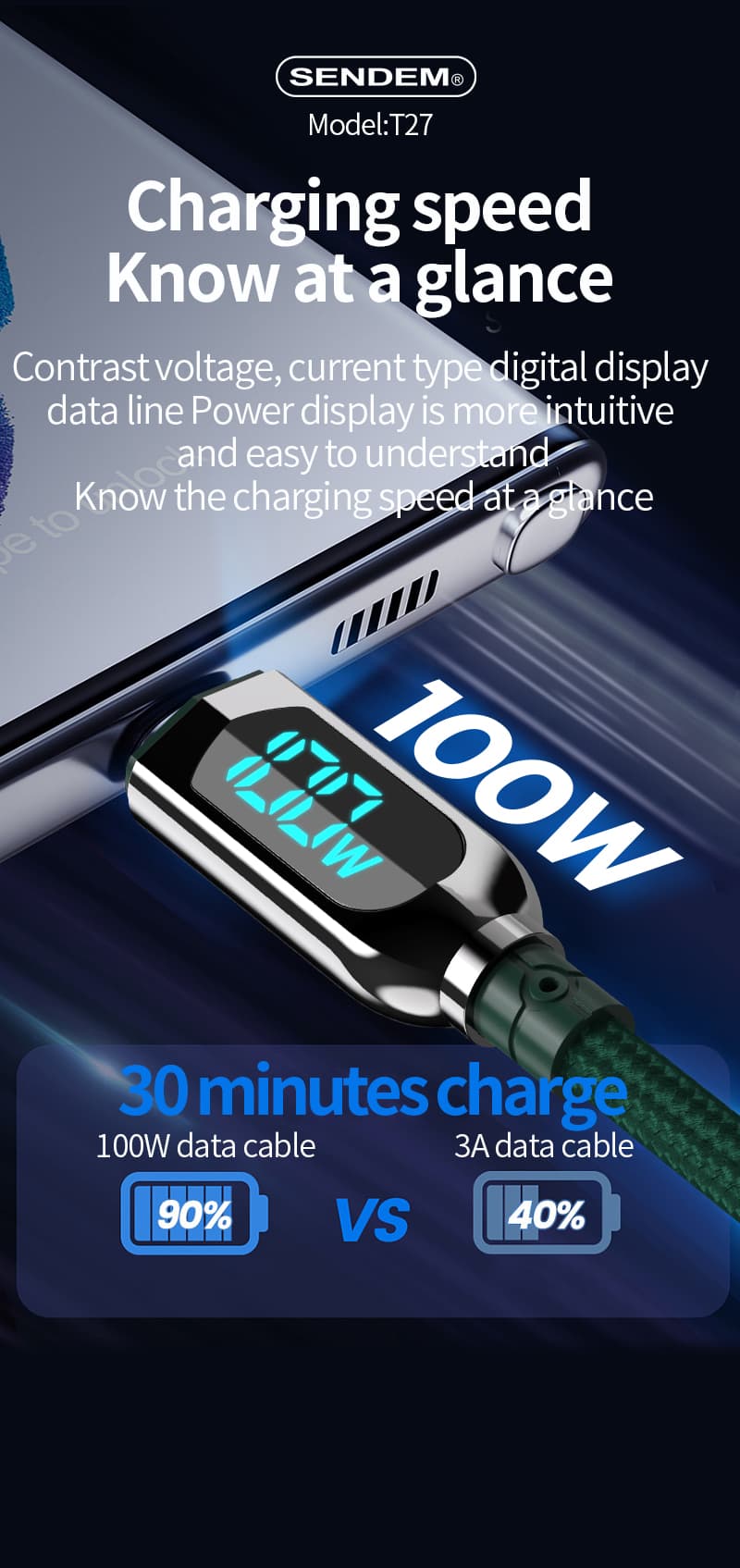 1.Intelligent power digital display,Digital display C to C,notebook 100W fast charging cable.